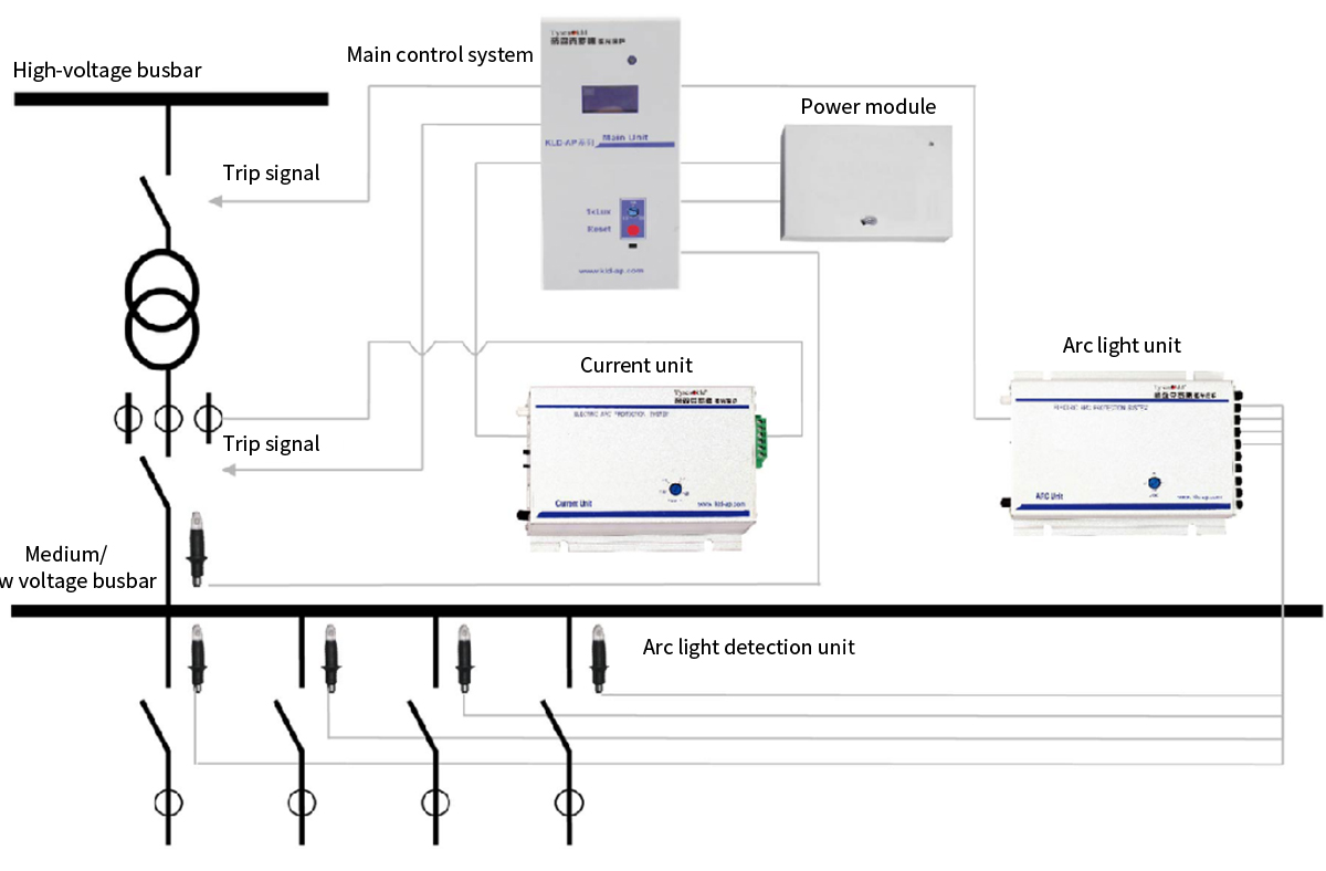 The core component of the arc light protection system is used to manage and control the whole arc light protection system. It can protect the switchgear when only arc light occurs, transfer the alarm information to the upper computer, and perform the monitoring and management functions.