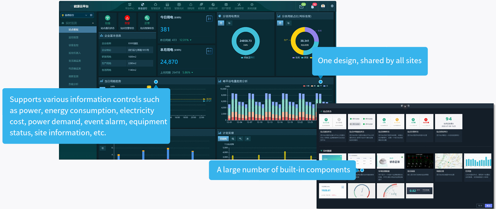 Application layer: ththe system platform can be composed of single or multiple servers, which carries out real-time data acquisition, data storage, calculation and analysis, and provides services such as real-time monitoring, energy-efficiency management, and energy-consumption analysis.