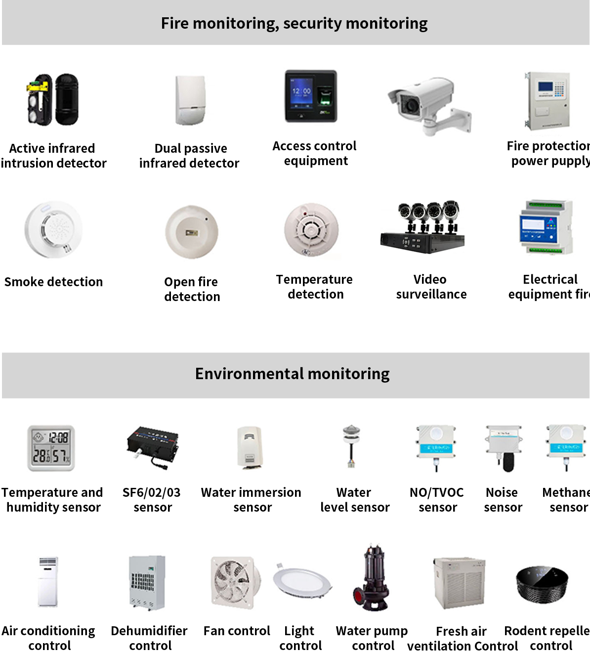 Optional comprehensive environmental testing and pre-alarms of temperature and humidity, smoke detection, water immersion, infrared detection, partial discharge, harmful gases, access control, video and other factors.