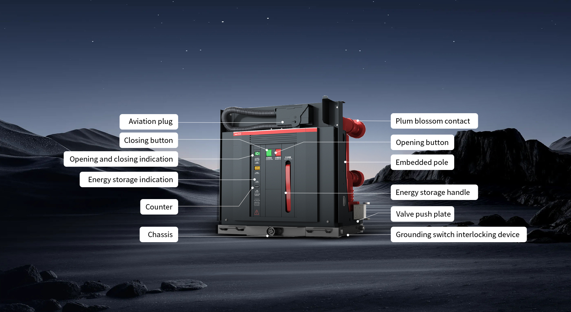 ZN139 series vacuum circuit breaker adopts advanced casting embedded pole, and its special structure ensures that the vacuum arc-extinguishing chamber is reliably protected from mechanical impact, dust and moisture.