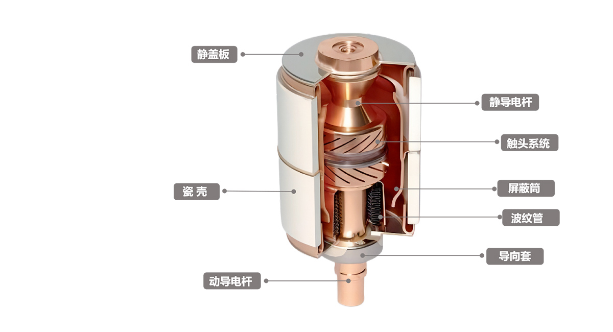 觸頭材料采用高品質(zhì)材料,杯狀縱磁真空滅弧室觸頭,截流值低;采用一次封排工藝,介質(zhì)恢復(fù)強(qiáng)度高,低漏氣率;機(jī)械強(qiáng)度高,機(jī)械壽命長;開斷絕緣恢復(fù)性強(qiáng),大大降低重燃及TRV 擊穿。